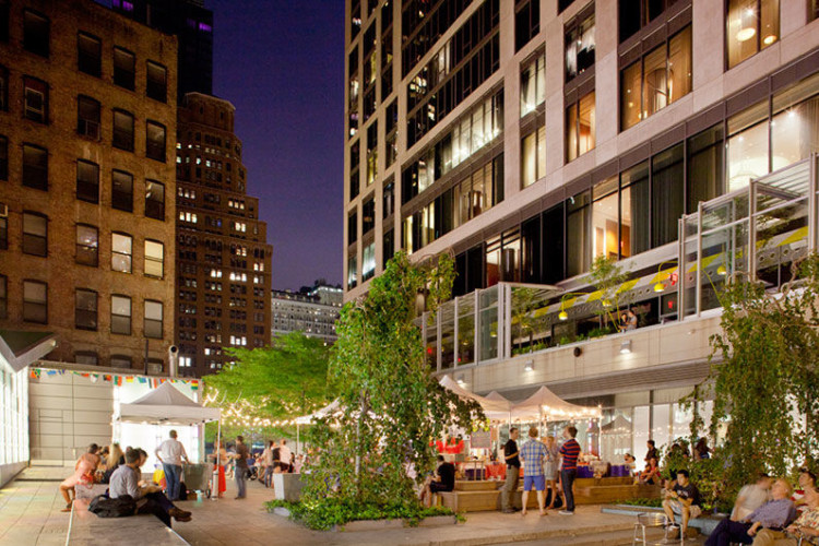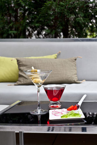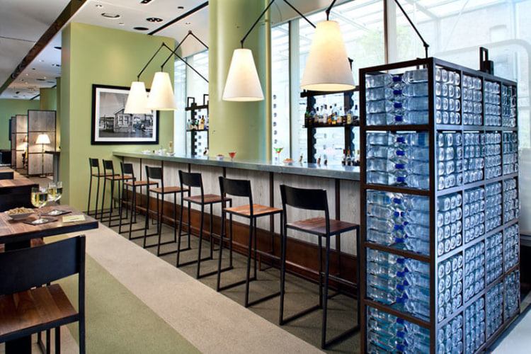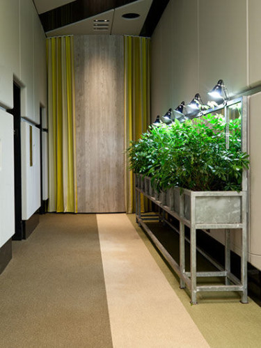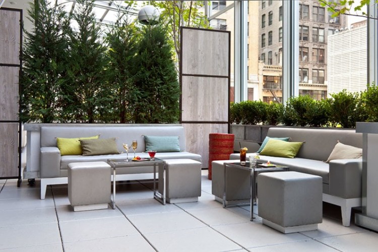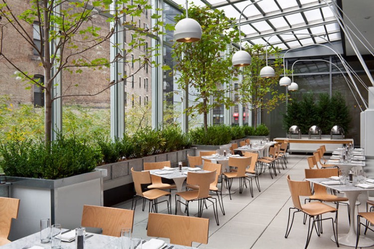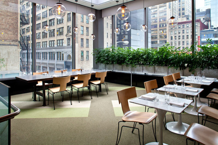 Tying together all the elements is a unique arrangement of metal planters bursting with live, green foliage in the elevator lobby and interior dining room that bring a sense of organic openness into the space as the sweeping views of Manhattan lend a balancing, urban inflection throughout.