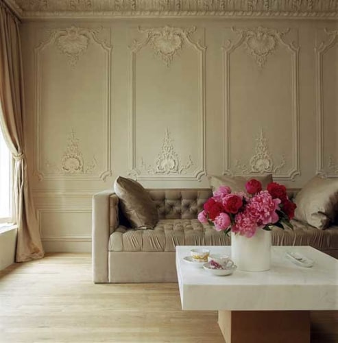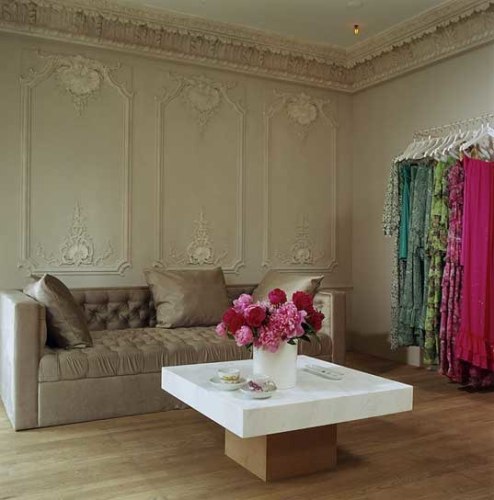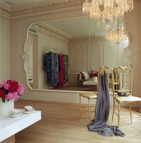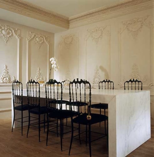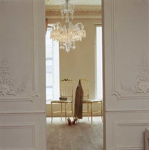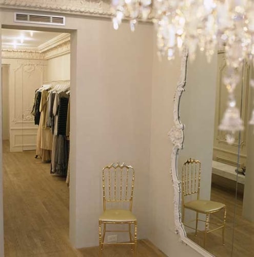 The French fashion designer approached RND to implement a design inspired by the designer's own boutique headquarters in Paris' rue de Rivoli. Working closely with the designer, RND brought the vision into reality, adapting the design to the surrounding space and adding functional elements needed for an active showroom. With the designer's vision including a Baccara chandelier, fine fabrics, and a palette of whites and creams, the resulting space transport guests into the interior appartment of a Paris home from another time, a space made complete by the fashion found within.